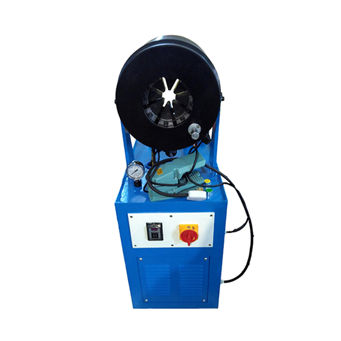 Машина для обжима РВД JK400 рассчитана на обработку шлангов с разной оплеткой, в том числе со спирально накрученной из стальной проволоки в два, четыре слоя. Станок работает с широким спектром диаметров благодаря расширенной комплектации кулачковыми штампами. Принцип работы заключается в расположении конца шланга с фитингом в центре формовочного гидравлического цилиндра, приведении в его в действие нажатием педали и круговой запрессовке. По окончании процесса оператор извлекает готовый рукав.